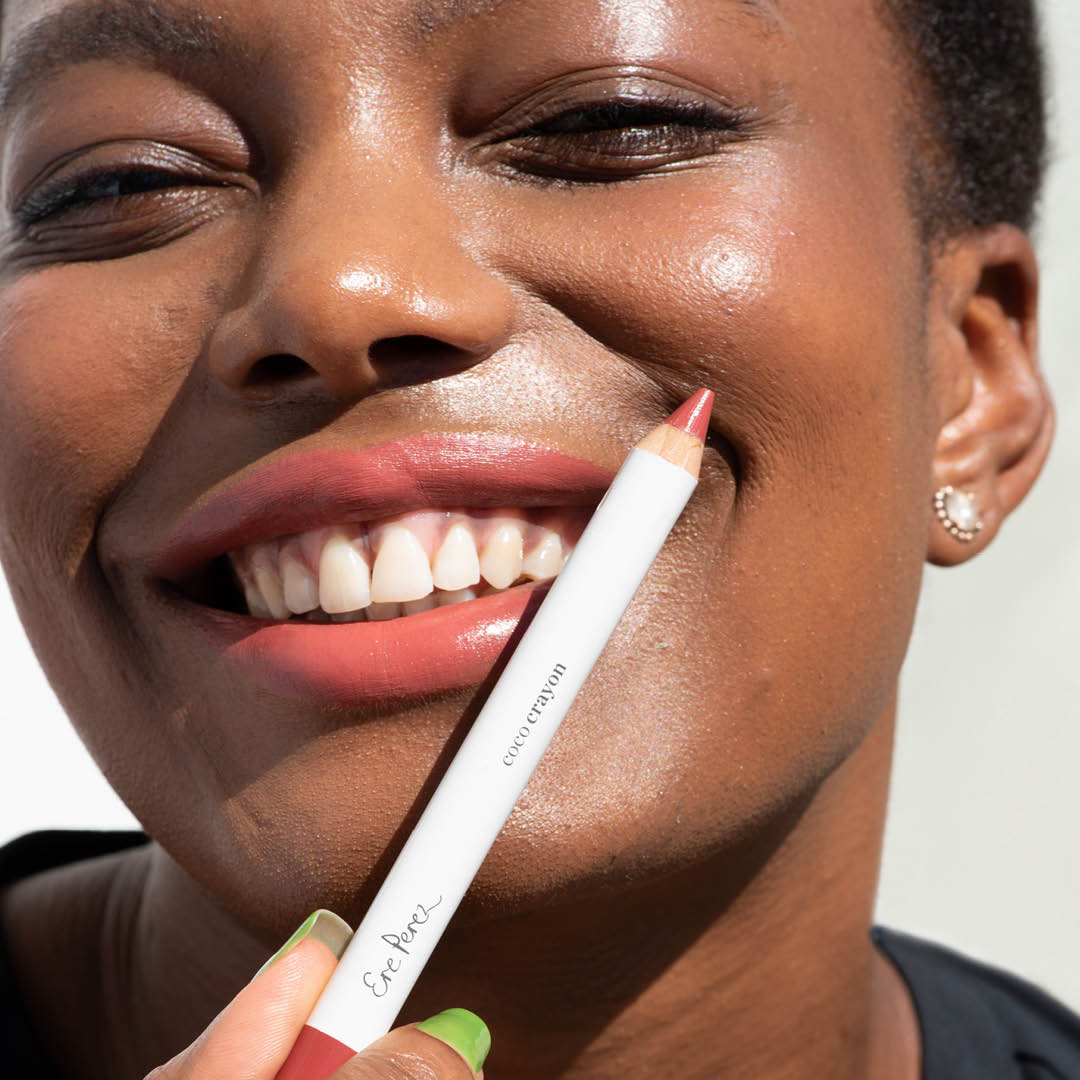 Ere Perez’s Coco Crayon delivers rich, buildable colour for lips and cheeks, making it a clean beauty essential. The tapered, slim crayon is perfect for defining, easy to blend, and comfortable to wear — the crayon that loves lips (and cheeks) back. Its creamy, hydrating formula smooths dry lips and leaves skin feeling soft, thanks to a blend of nourishing natural ingredients: coconut oil to protect and nourish, and antioxidant-rich baobab seed oil to support healthy, supple skin. Silica and oryzanol provide an extra skin-loving boost.
