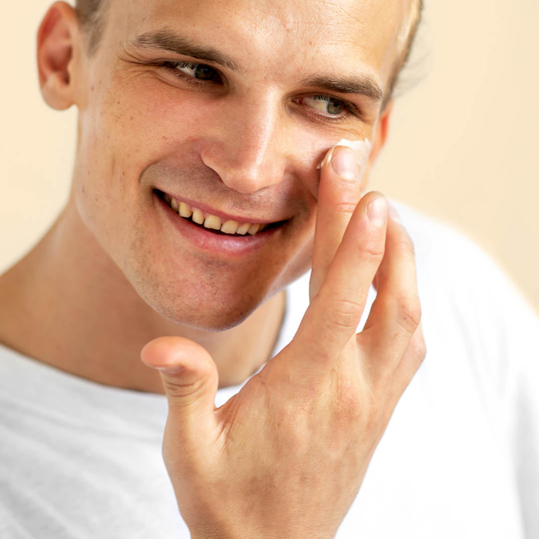 2. Using fingertips, gently rub into the face in round motions to stimulate circulation.