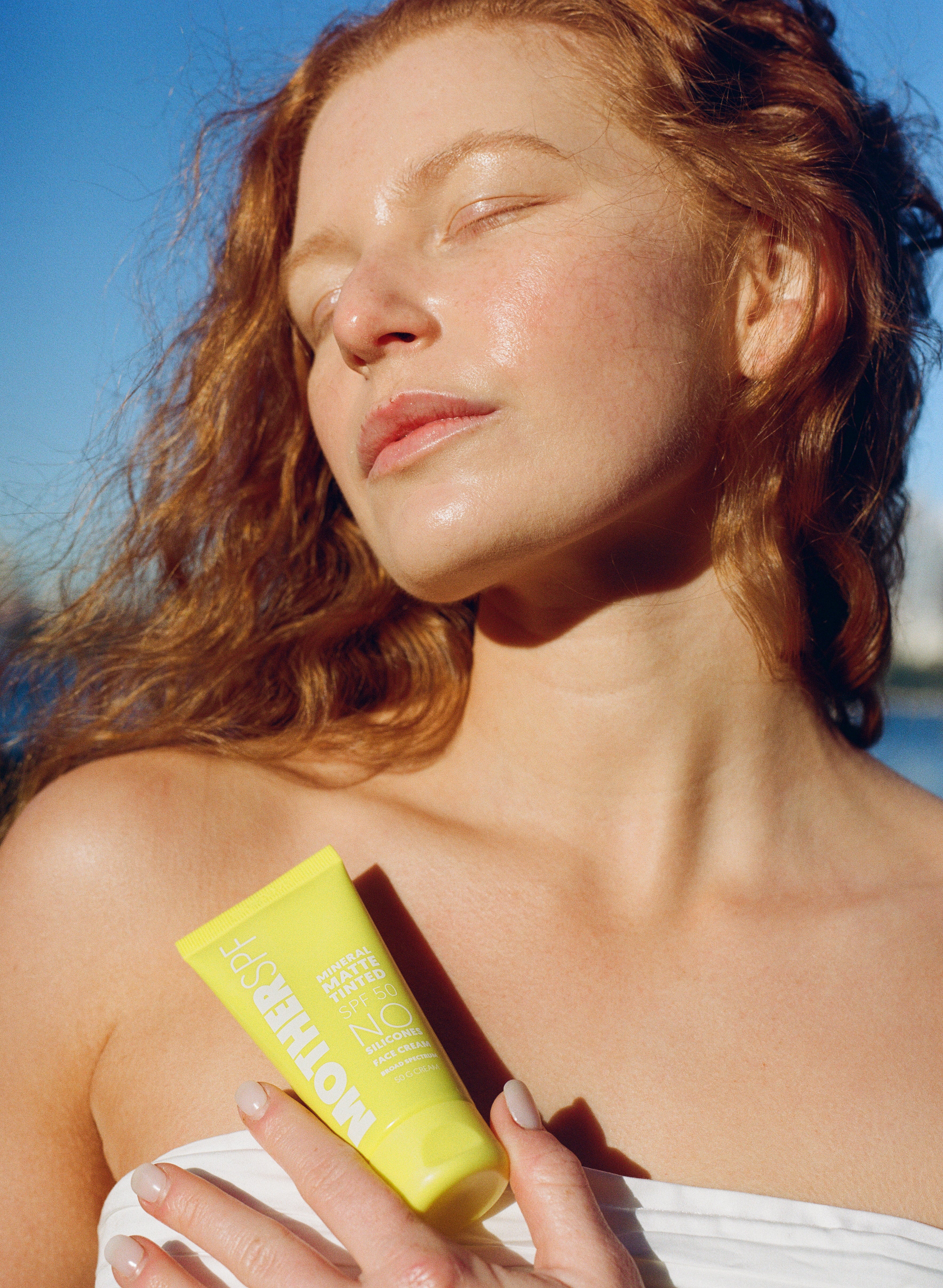 MOTHER SPF’s Satin-Finish SPF 50 is a lightweight mineral sunscreen designed to balance and protect oily and acne-prone skin. Infused with tapioca starch, it absorbs excess oil and provides a soft, matte finish without clogging pores, while jojoba oil helps regulate oil production and soothes irritation with its antibacterial properties.