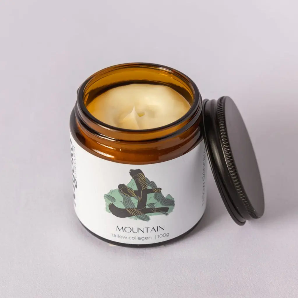 Deeply nourishing and supports the skin’s natural collagen production. Rich in fat-soluble vitamins A, D, E and K, it provides essential nutrients that help stimulate cell regeneration and maintain skin elasticity. Its unique fatty acid profile closely resembles that of human skin, allowing these nutrients to penetrate deeply and effectively. By strengthening the skin barrier and reducing inflammation, tallow creates an ideal environment for collagen synthesis. Regular use can help improve firmness, reduce the appearance of fine lines and support a more youthful, resilient complexion.